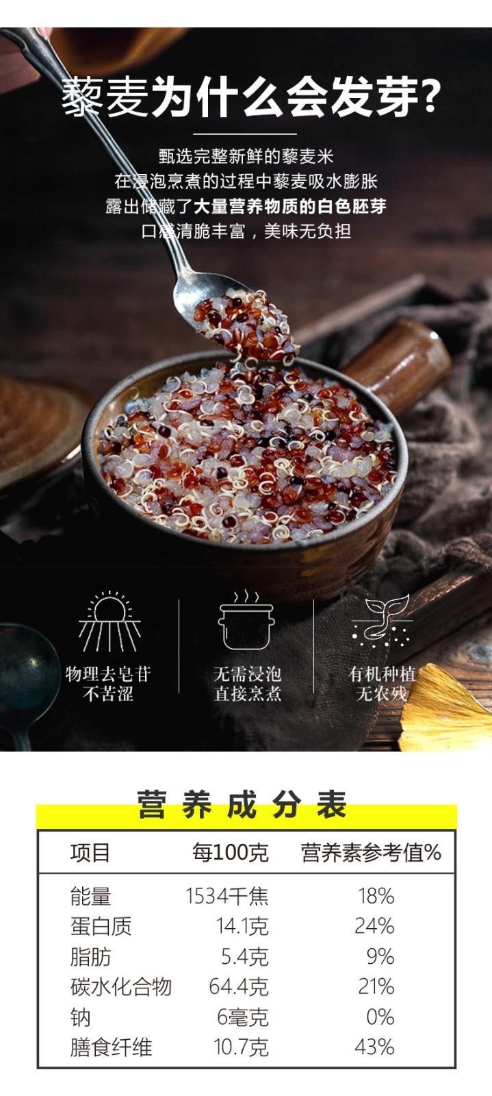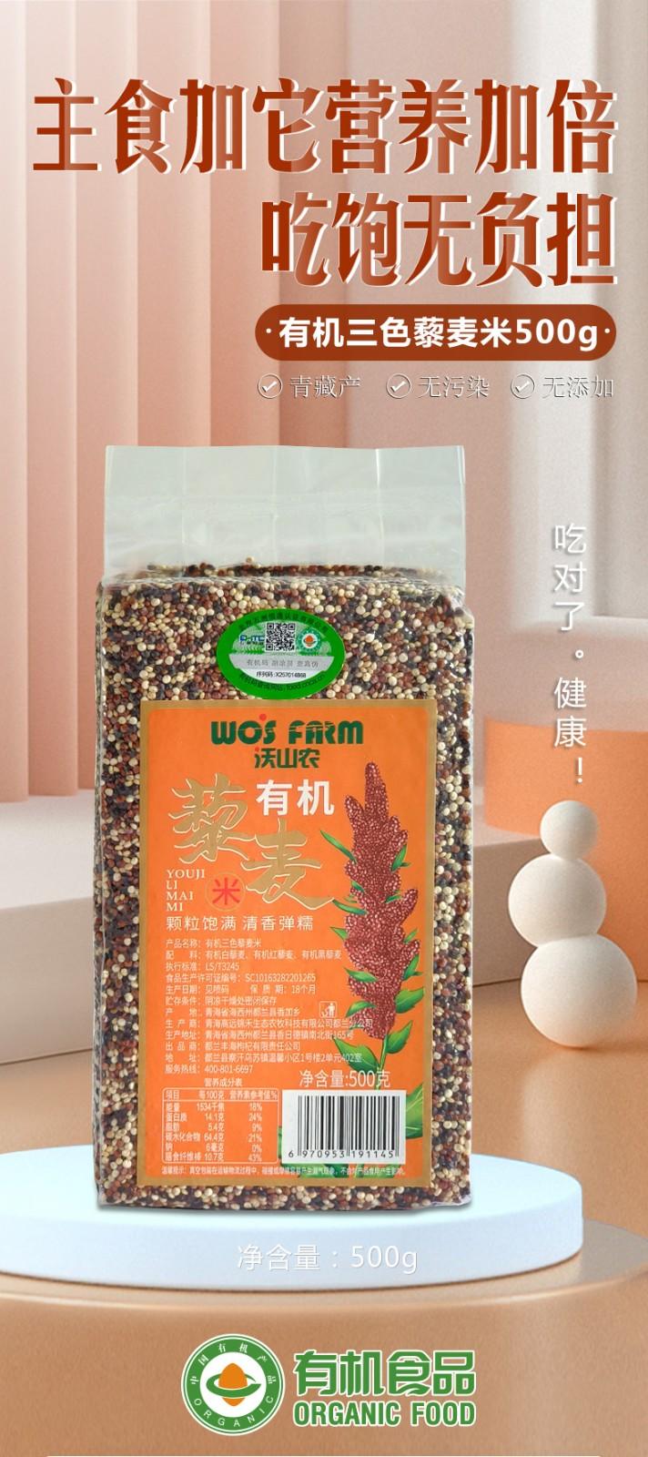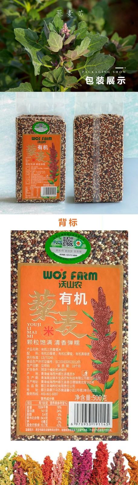 沃山农青海颗粒饱满无农残营养膳食纤维杂粮孕妇米有机三色藜麦米500g 500g/袋